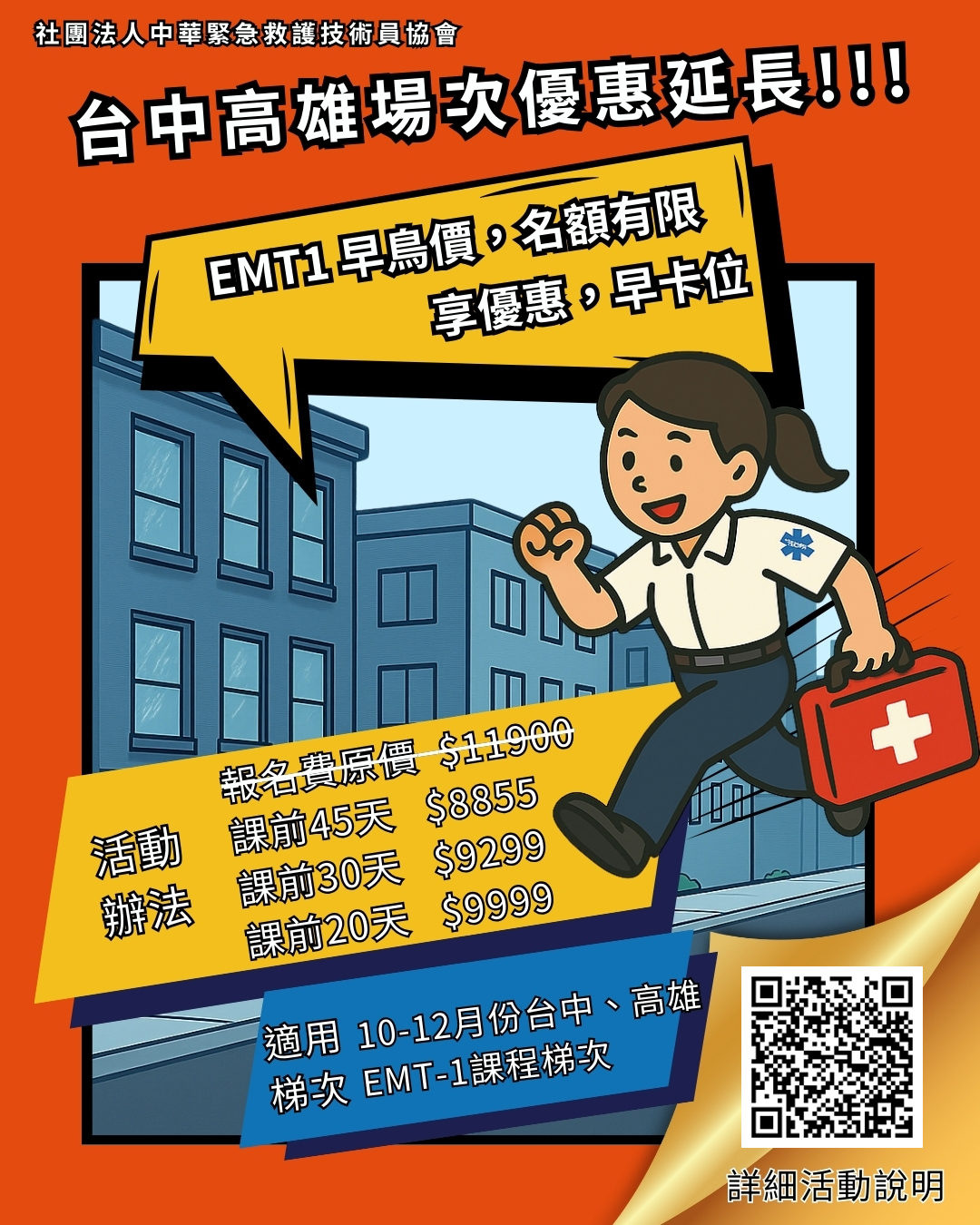 【中南部EMT-1課程梯次 早鳥優惠活動 好評延長!!!】